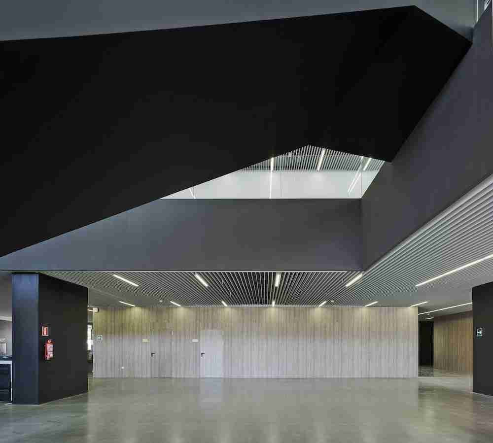 Fals sostre acústic de fibra mineral marca AMF model Antaris C de 13mm de gruix.