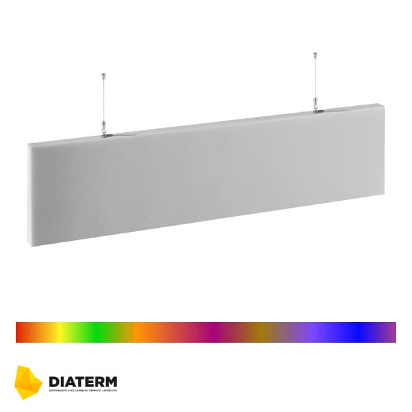 Absorbente ignífugo de ecos y reverberaciones con estética lisa y forma rectangular. Fácil instalación. Cumple con el CTE para el usoc en locales de pública concurrencia.