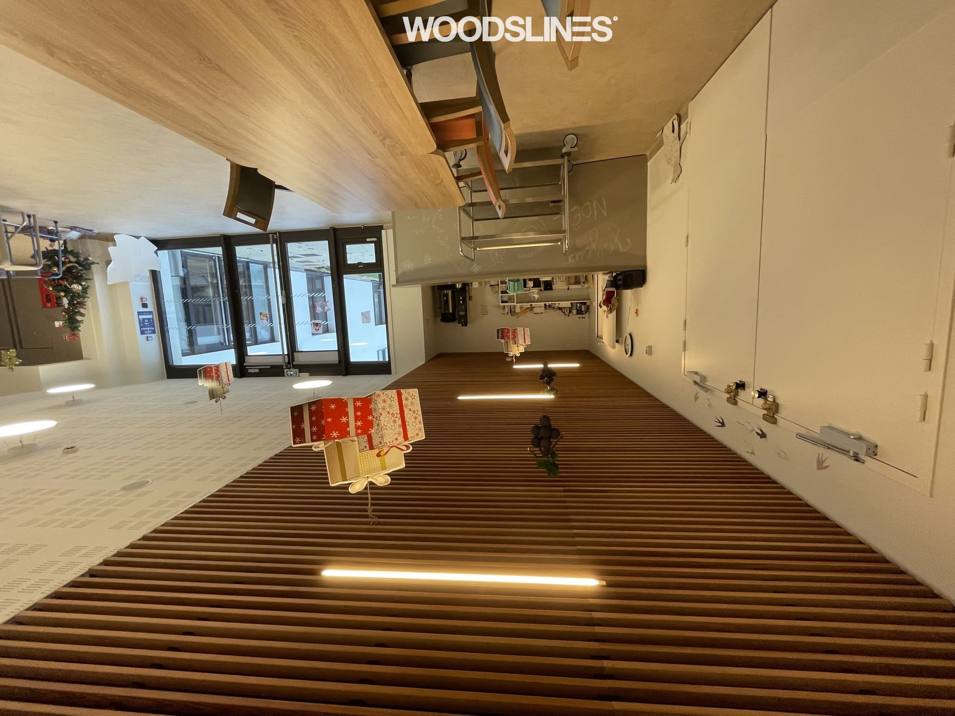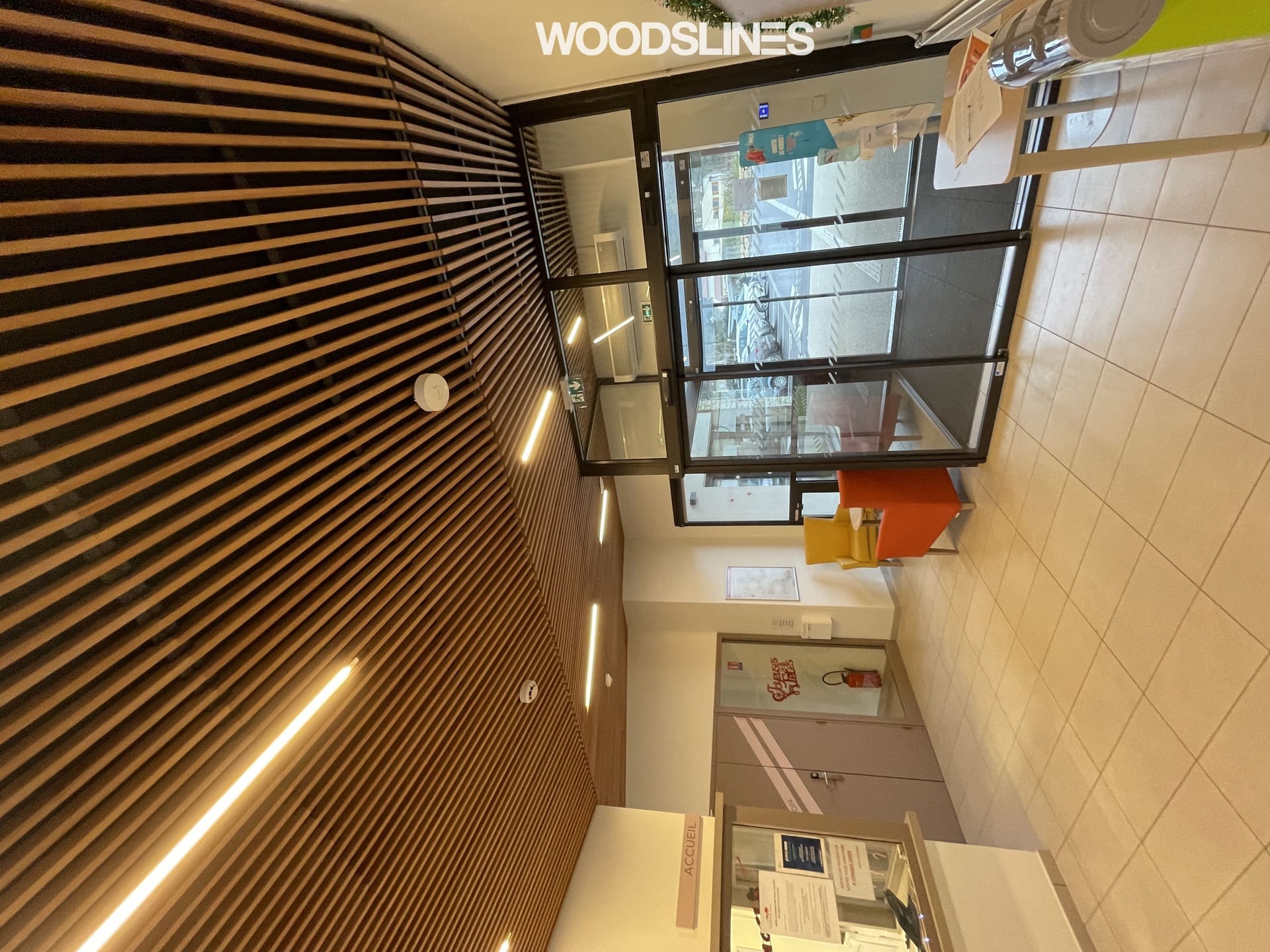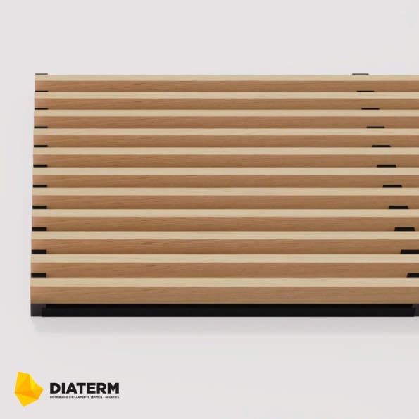 Sistema modular acústico de lamas de madera natural integradas a rastreles troquelados que facilitan la colocación en falsos techos y/o paredes. Disponible en acabado natural o diversos tonos tintados según catálogo. La mecanización específica de los rastreles, permite incorporar