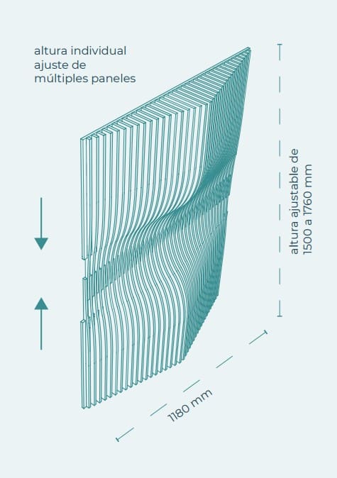 ✅ Formato versátil: Con dimensiones de 1180 x (1500–1760) x 195 mm, su disposición vertical permite múltiples combinaciones compositivas según las necesidades del proyecto.