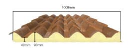 El panel Sándwich teja con efecto envejecido Isodomus, gracias a su núcleo en espuma de poliuretano permite un alto aislamiento térmico. El acabado envejecido de su chapa superior nos permite diseños singulares creando un efecto muy natural, de modo que se trata de un panel idoneo para ambientes rurales, iglesias, edificios de alto valor histórico, etc.