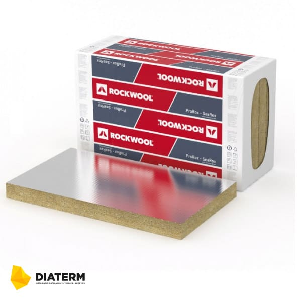 Panel semirígido de lana de roca volcánica revestido por una cara con una lámina de aluminio.