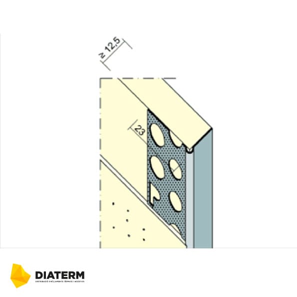 Perfil esquinero para sistemas de yeso laminado con placa de 12,5mm, compatible con cualquier placa del mercado como Knauf, Placo, Habito o Pladur.