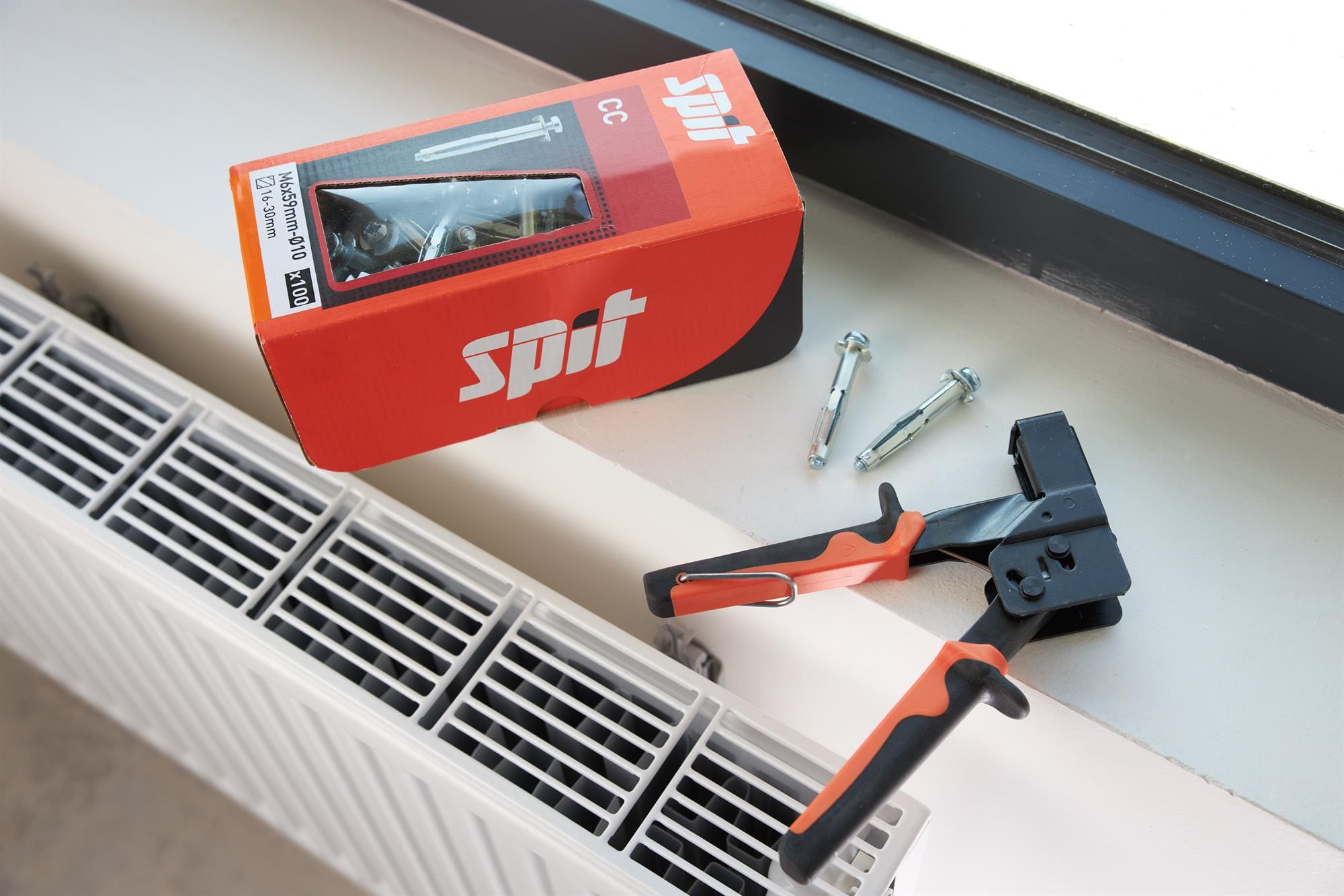 La pinza de expansión Spit funciona como una grapadora, con esfuerzo reducido gracias a su sistema de engranajes y el mango suave.