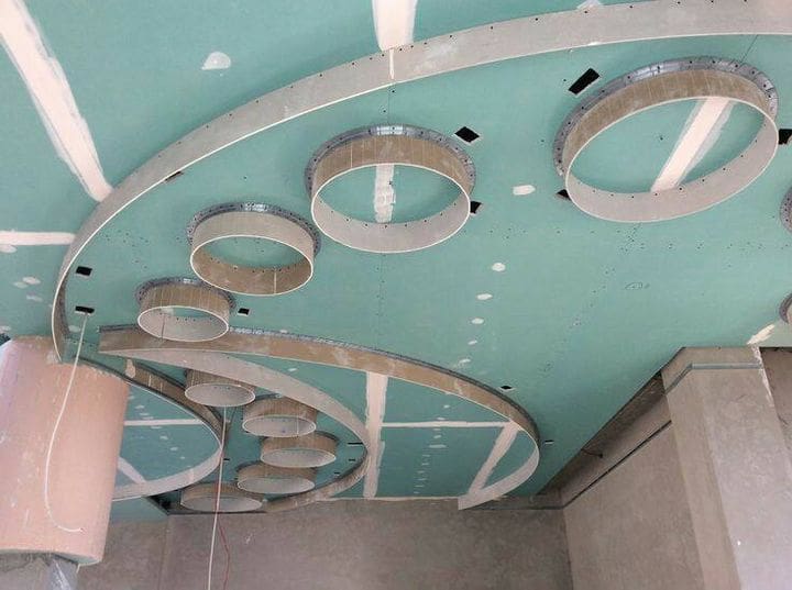 Placa con alma de yeso mezclada con fibras de vidrio que permiten un mayor radio de curvatura.